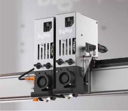 模塊化打印頭可獨立操控,從而為同時進行雙色打印或采用支撐材料打印提供了最佳的靈活性。打印頭的調(diào)整和更換不需要采用工具.。適合0.6mm,1mm,2mm 三種噴嘴。打印時,活動打印頭會略微向下以免觸碰打印物體。