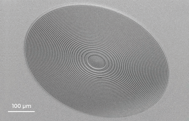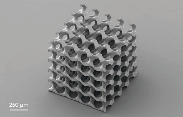 ? ? ? 多光子聚合 (MPP) 是一種適合于超材料制備的技術(shù)。超材料是一種復(fù)合材料,其物理特性與所用材料的物理性能不同。? ? ? 三維螺旋結(jié)構(gòu)在機(jī)械上是剛性的,但很輕。該結(jié)構(gòu)是通過(guò)使用加寬物鏡工作距離 (WOW) 方法制造的,利用該方法可以增加高數(shù)值孔徑物鏡的工作距離。該結(jié)構(gòu)的總體尺寸-為1mmx1mmx1mm。結(jié)構(gòu)高度遠(yuǎn)大于所用物鏡的工作距離(0.19 mm)。? ? ? 這種微制造技術(shù)使制造中尺度結(jié)構(gòu)成為可能,這些結(jié)構(gòu)的總尺寸比其最基本特征大幾個(gè)數(shù)量級(jí),