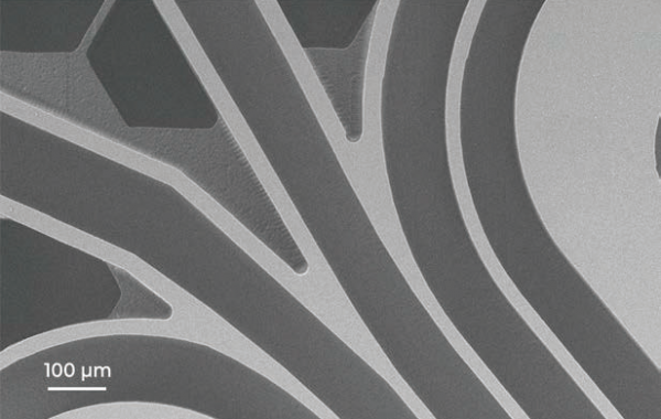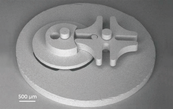 ? ? ? 日內(nèi)瓦齒輪是一種任意形狀的微機(jī)械部件,是產(chǎn)生間歇性旋轉(zhuǎn)運(yùn)動(dòng)常用的裝置之一。包含兩個(gè)相互嚙合的元件。通過(guò)將一個(gè)齒輪旋轉(zhuǎn) 360°,另一個(gè)齒輪以固定的 90°增量移動(dòng)。? ? ? 使用 SLE 技術(shù),這些機(jī)構(gòu)可以由單片玻璃制成,而不需要組裝步驟。由于無(wú)需組裝該結(jié)構(gòu)可以小規(guī)模生產(chǎn)(低至數(shù)百微米)而無(wú)需復(fù)雜的微操作。此外,通過(guò)將一個(gè)小磁體連接到機(jī)構(gòu)上并將其放置在旋轉(zhuǎn)磁體上,可以實(shí)現(xiàn)結(jié)構(gòu)的平穩(wěn)連續(xù)運(yùn)動(dòng)。這是由于結(jié)構(gòu)的不同運(yùn)動(dòng)部件之間的間隙非常小 (<10 μm) 和很好的表面粗糙度 (~200 nm RMS) ,更大限度地減少了過(guò)度摩擦。