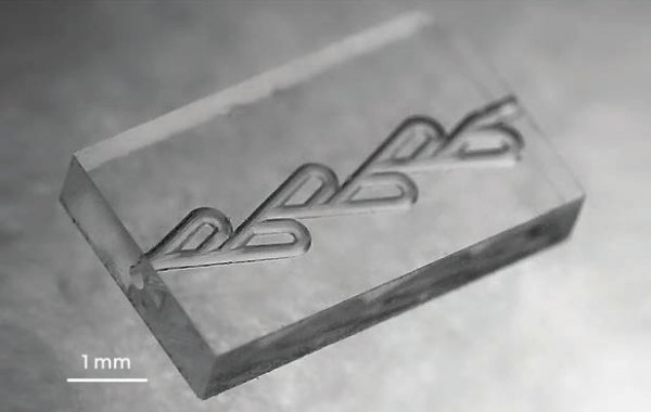 ? ? ? 復(fù)合制造方法能夠通過(guò)激光燒蝕從熔融二氧化硅中快速生產(chǎn)通道,而多光子聚合用于在通道內(nèi)集成任意幾何形狀的精細(xì)網(wǎng)格 3D 過(guò)濾器。為了證明這種方法的有效性,生產(chǎn)了一種用于新一代藥物開發(fā)和生產(chǎn)的微流體大分子分離器原型。它被設(shè)計(jì)用于在混合溶液中分離低分子量和高分子量物質(zhì)。這些器件所需的聚合物和玻璃部件在制造過(guò)程中自由選擇和結(jié)合,為器件帶來(lái)了新的功能水平,并簡(jiǎn)化了制造工作流程。由于多光子聚合的多功能性,可以以很高的分辨率實(shí)現(xiàn)各種復(fù)雜幾何形狀的過(guò)濾器。例如,該過(guò)濾器的孔隙為 500 nm 寬。